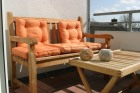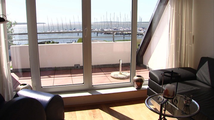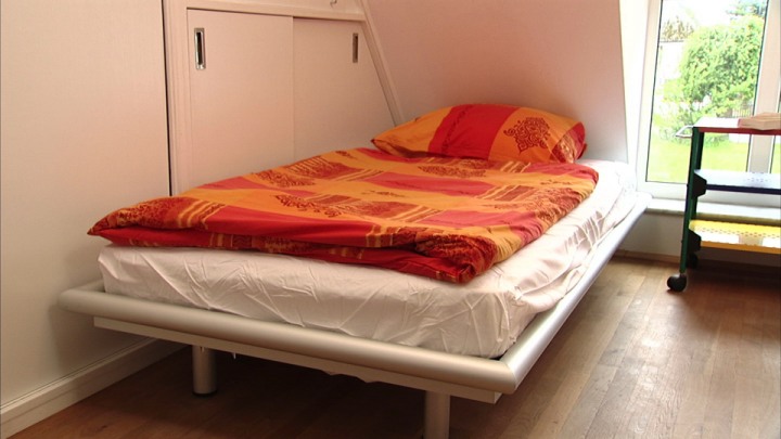 Im Obergeschoss unseres familienfreundlichen Ferienhauses in Strandnähe befindet sich das Duschbad mit WC. Das Badfenster gibt den Blick in Richtung Bucht frei. Daneben liegt ein Schlafzimmer mit zwei getrennten Betten, die sich bei Bedarf aber zusammenschieben lassen. Von hier aus schaut man auf die Dorfstraße. Zum Meer hin ausgerichtet ist der Wohnbereich mit einem bequemen, ausziehbarem Designer-Sofa, das mit wenigen Handgriffen in ein komfortables Bett mit Kaltschaum-Matratze (200 cm mal 150 cm) umgewandelt werden kann. Dieser Wohnbereich und der angrenzende Balkon bieten ebenfalls einen atemberaubenden Meerblick.